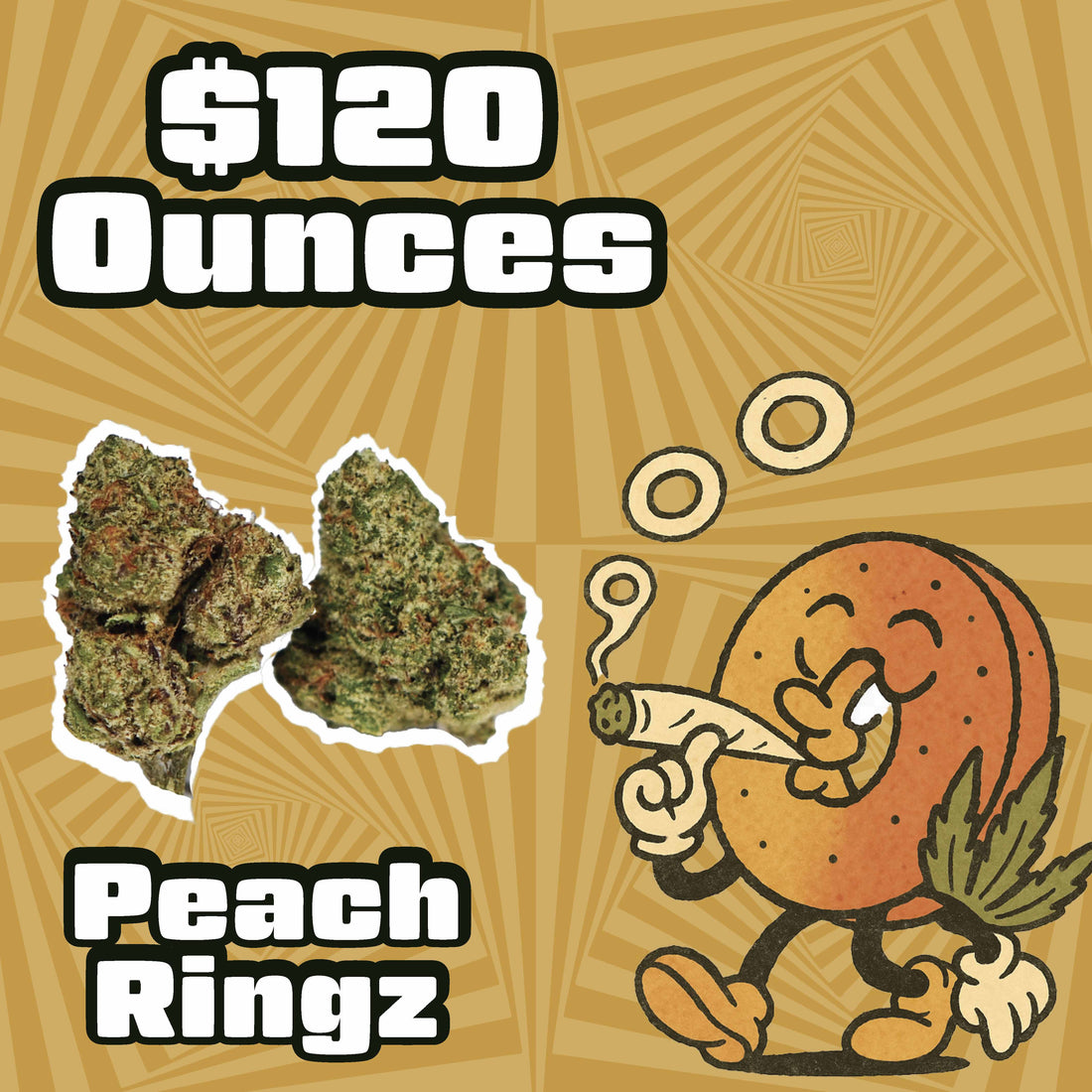Peach Ringz – This strain tastes like biting into a peach ring candy with a...