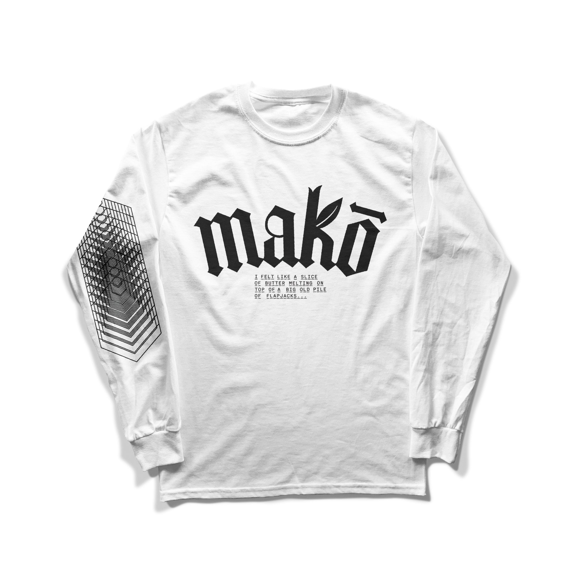 This isn’t just a shirt, it’s a state of mind. Front and center you’ve got the bold Mako logo, backed up by one of the most quotable lines from Pineapple Express: “I felt like a slice of butter melting on top of a big old pile of flapjacks.” Slip this on and suddenly you’re not just chilling, you’re the main character in a stoner comedy. The sleeve flexes a trippy geometric design that’ll have strangers asking if you “know a guy” (spoiler: you do). Soft, comfy, and dangerously good at sparking conversations you may or may not remember later.
