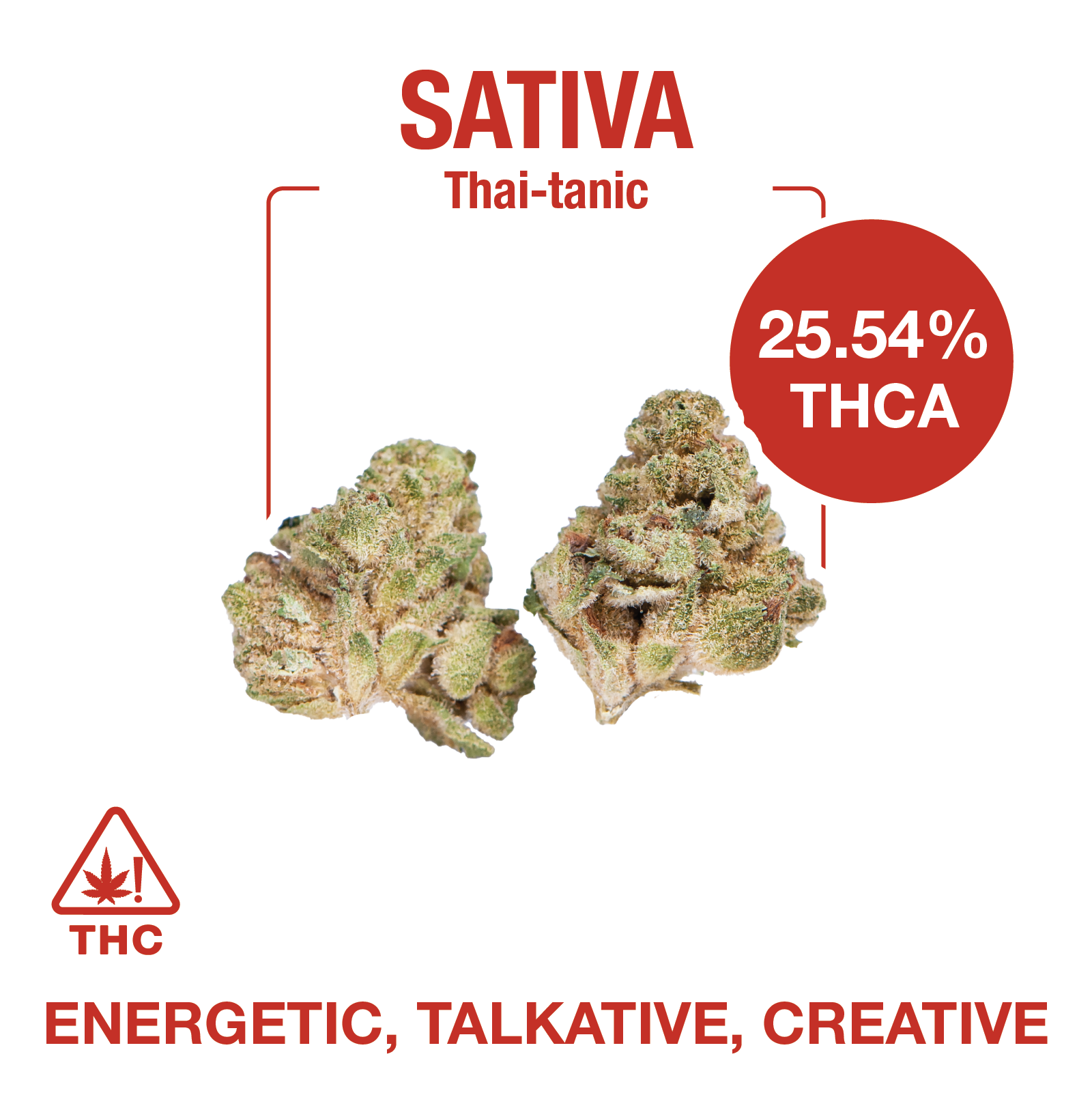 This strain is built for lift-off. This bold sativa‑dominant blend (Thai × Skunk #1) greets you with spicy pine, sweet honey, and a whisper of chocolate that tickles your senses before the ride begins. The high hits your head first; energizing, creative, and a little trippy, then descends into a mellow, dreamy state that balances spark with serenity. Ideal for exploring ideas, sparking conversation, or just riding the wave of your own thoughts.